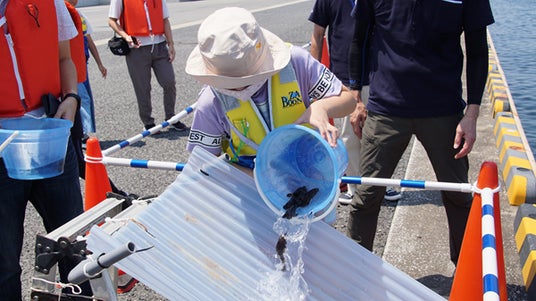 小学4年生~6年生の皆さまが対象の本イベントは、海上からの海域や空港見学によって大阪湾の多様性や漁業のお仕事、関西国際空港の環境保全の取り組みなどへの関心・理解を深めることを目的にしています。当日は、チャーター船に乗って関西国際空港周辺の海域・藻場環境の見学や、大阪湾に生息する魚類や漁について学ぶことができます。その他にも、キジハタの放流体験など、実際に目で見てふれあう体験を通じて楽しく環境学習ができるイベントです。