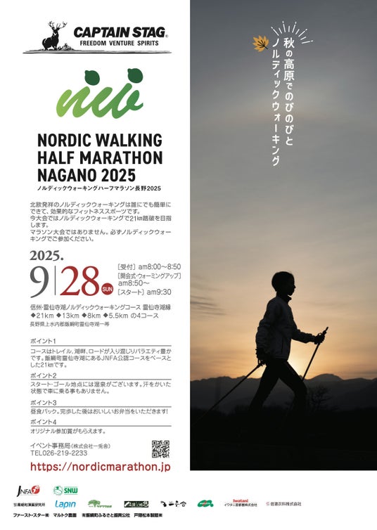 「ノルディックウォーキングハーフマラソン長野2025」を9月28日に長野県飯綱町で開催!