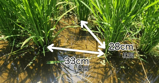 稲1株ごとの間隔を広くとることで、稲は十分な光と風を受けて健全に育ちます。根や葉がのびのび成長し、暑さによるストレスが少なくなることで、猛暑にも強くなることができます。また、風通しが良いため病害の発生も抑えられ、安定した品質につながります。