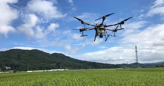 猛暑期は稲が栄養不足になりやすいため、ドローンを使い空からミネラル肥料を迅速かつ均一に散布。重労働を軽減しつつ、稲に必要な栄養をしっかりと届けて、登熟(米の実り)をサポートしています。
