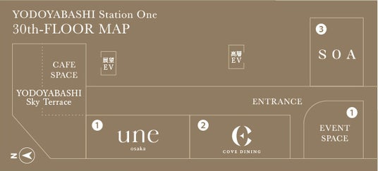 全国でホテルや結婚式場、飲食店を開発運営するディライト株式会社(奈良県奈良市、代表:出口 哲也、以下:当社)は、2025年9月、大阪、淀屋橋駅直結の複合施設「淀屋橋ステーションワン」(2025年6月開業)の最上階30階に、結婚式などを行うイベントスペース「une osaka(ユヌ大阪、以下:une)」、ハイカジュアルダイニング「COVE DINING(コーヴダイニング、以下:COVE)」、ラグジュアリーレストラン「SOA(ソア、以下:SOA)」の3店舗を出店します。各店舗の開業日は、uneが9月1日(月)、COVEが9月11日(木)、 SOAが9月20日(土)です。