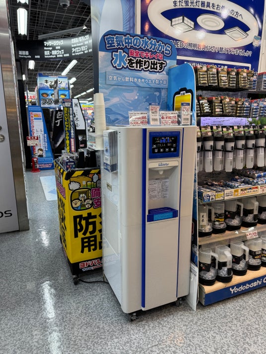 首都圏エリアと関西エリアで実機を展開しておりますので、空気から水を作り出す機器を確認し、それが生成する水を飲んでみたい方は是非お越しください。