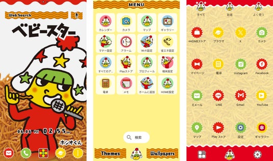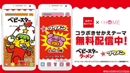 スマホのきせかえにもベビースター!?ベビースター and きせかえアプリ「+HOME」にてコラボきせかえテーマ無料配信