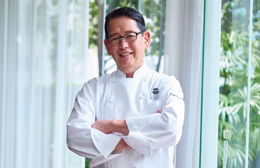 調理師学校卒業後、リゾートホテルで3年間修行し、1986年にヒルトン大阪のオープニングスタッフとして入社。その後、外資系ホテルでレストランや宴会料理長を歴任し、大型テーマパークの開業時にはセントラルキッチン料理長として活躍。フランスのポール・ボキューズをはじめ、世界のトップシェフとのコラボ経験を磨き、大阪司厨士協会主催の近畿地区実技料理コンクールで優勝、大阪国際グルメフェアで銀賞を受賞するなど、多くの実績を誇る。また、国内外の料理界で高く評価される「日本エスコフィエ協会」「トックブランシュ国際倶楽部」「日本シェフ同友会」「日本アントナンカーレム協会」の正会員としても活動している。
