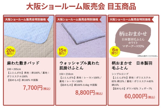 【昭和西川大阪ショールーム販売会概要】 <3日間限定>