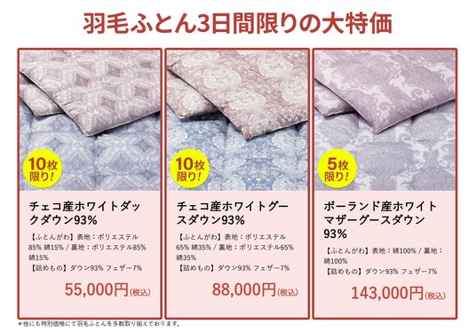 今だけの特別価格で夏物寝具をご提供(ご好評の商品は、売り切れ次第終了となります)。