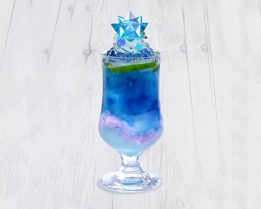 もう一品の新メニューである「スターリーワールド ~はじまりの流星~」は、「スターリーワールド」のゆらめくふしぎな空をイメージした、ライムが香るドリンクです。