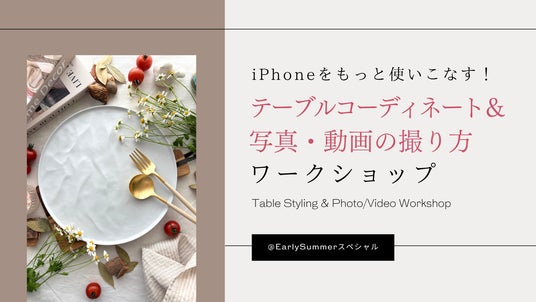 テーブルコーディネート&スマホ撮影ワークショップ撮影したい素材や季節に合わせたテーブル演出と、スマホの機能やレンズの特性を活かして、誰でも簡単に"映える"写真・動画を撮影するコツをご紹介します。