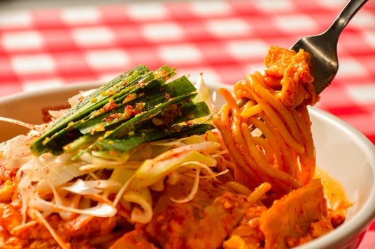 にんにく・唐辛子・鶏ガラの特製あんに、豚バラ肉・辛味ネギ・ニンニクにらをトッピング!