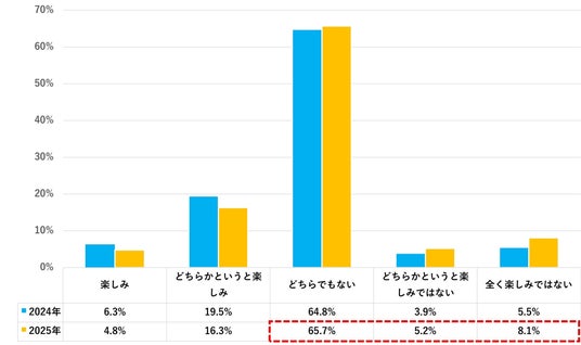 ・「全く楽しみではない」「どちらかというと楽しみではない」 と答えた方が12.0%