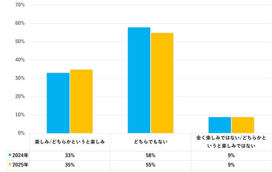 ・「全く楽しみではない」「どちらかというと楽しみではない」 と答えた方が9.0%