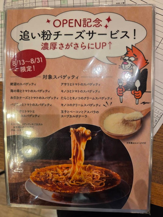 オープンを記念して、追い粉チーズサービスキャンペーンを8月31日(日)まで限定で実施します。この機会にぜひホームズパスタ岡山駅前店へお越しください。