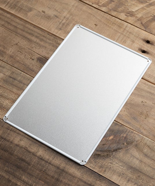 ブリキにペイントされたレトロな雰囲気の看板は立体感があり、