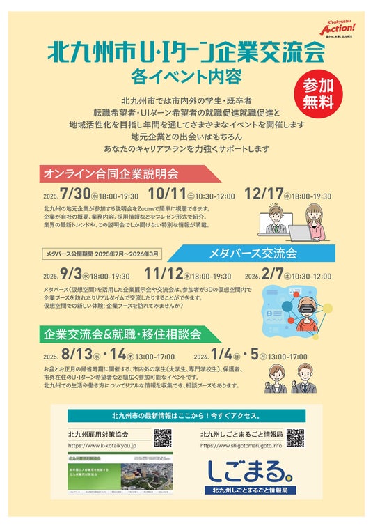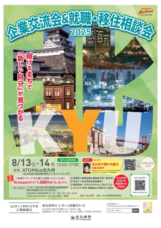 北九州市は、2025年8月13日(水)・14日(木)の2日間、地元企業と直接交流できる帰省時期の恒例イベント「企業交流会&就職・移住相談会」を開催します。