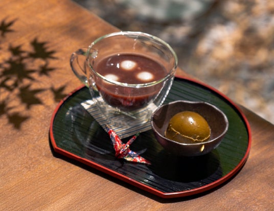 アフタヌーンティーの始まりは、北海道産小豆を使用した「白玉ぜんざい」。ほんのり塩味を効かせた甘さ控えめの餡と、もっちりとした白玉が絶妙に調和し、アフタヌーンティーの心地よいスタートを彩ります。続いて香ばしい焙じ茶の香りが広がる「ほうじ茶ジェラート」。ミルクの濃厚な味わいと甘さをお楽しみいただきながらも、すっきりとした後味で、口の中を爽やかに整えてくれます。