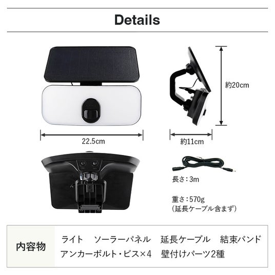 ソーラーパネル:幅22cm*高さ12.5cm*奥行き1.5cm