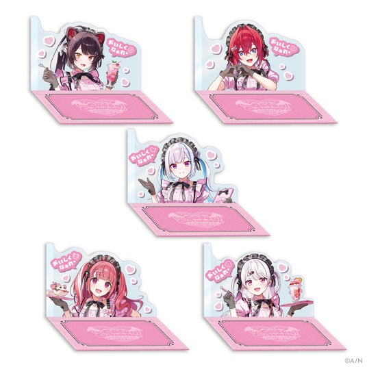 各ライバーのアクリルスタンド、チェキフィルム2枚セット、メッセージTシャツ、あいこめ!クリアファイルの4点セットとなります。