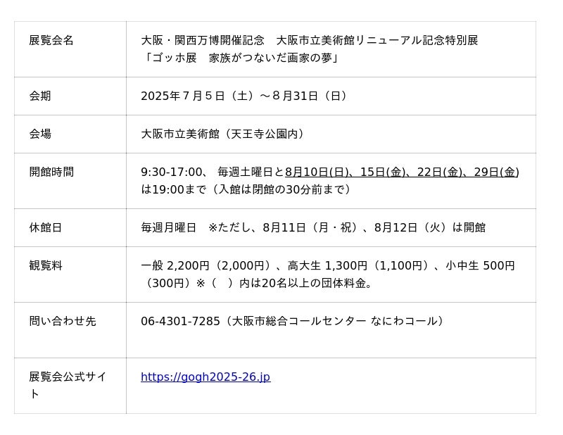 大阪・関西万博開催記念 大阪市立美術館リニューアル記念特別展「ゴッホ展 家族がつないだ画家の夢」好評開催中!来館者数10万人を突破!