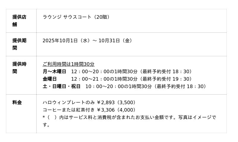 小田急ホテルセンチュリーサザンタワー 20階「ラウンジ サウスコート」にて、2025年10月1日(水)より10月31日(金)まで提供