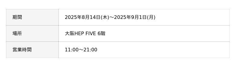 オンラインショップ購入期間は8/14 11:00 ~ 9/7 23:59までとなります。