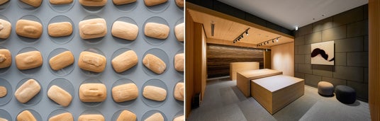 左:ザ・サウザンド京都 アートギャラリー 右:THE DAY OF DAYS(うちの石鹸) 2022 イチョウほか