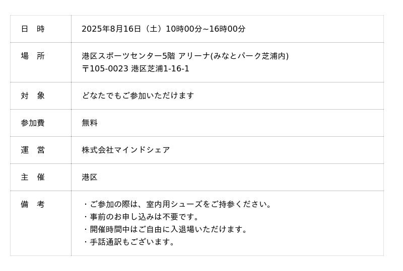 【8月16日(土) 東京都港区主催】 スポーツ体験会『Cheer on!2025 MINATO CITY ~世界陸上・デフリンピックを知ろう~』開催のお知らせ