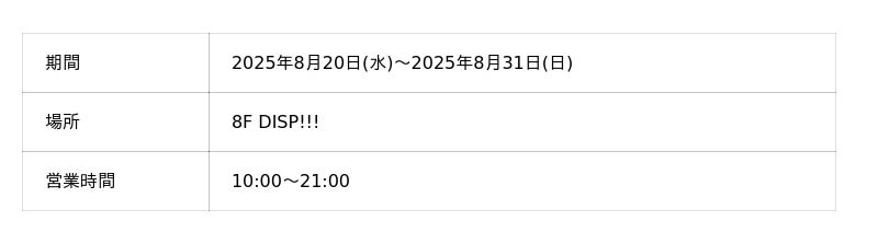 POP UP STORE情報