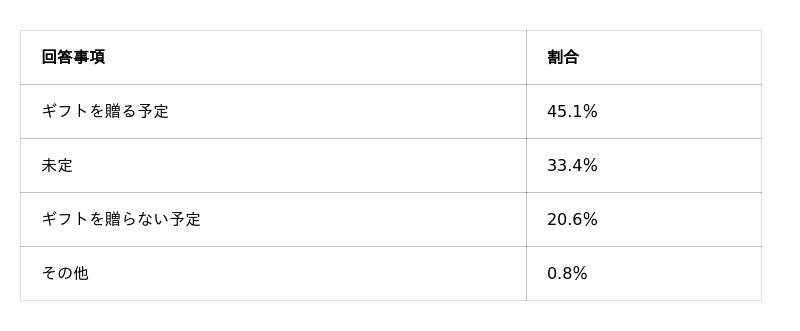「贈る予定」は45.1%、"確定しない"層が過半数に