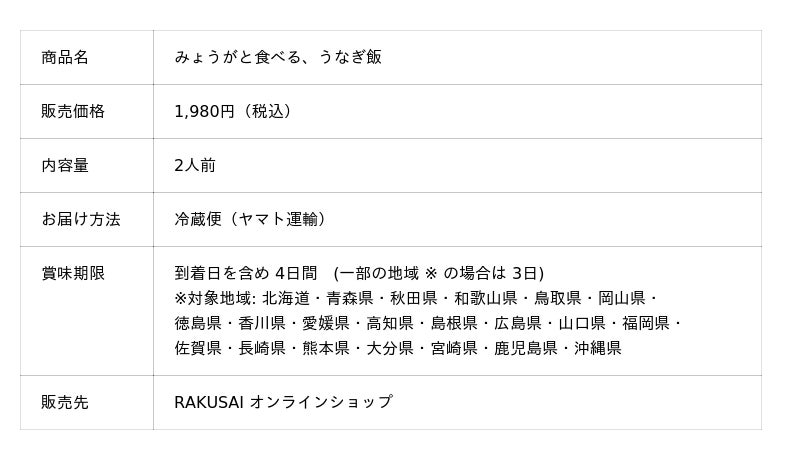 楽彩株式会社(本社:東京都足立区/代表取締役社長:大崎善保)は、日本の食卓を応援する「米の日」に合わせ、新商品『みょうがと食べる、うなぎ飯』ミールキットを2025年8月18日(月)10:00より公式オンラインショップにて販売開始いたします。