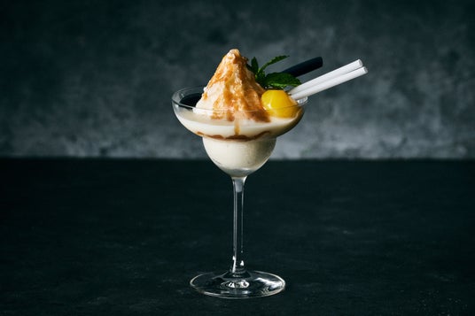 【Chestnut Pina Colada / 栗のピニャコラーダ 1,800円 】ご好評をいただいている「Bar & Lounge Melody」名物ピニャコラーダが、秋限定で装いを新たに登場。ラム、パイナップル、ココナッツをベースにしたトロピカルな味わいに、秋の味覚・栗を合わせた、フローズンカクテル。これまでにない新感覚のピニャコラーダをお楽しみください。