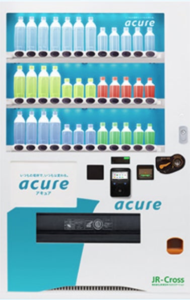 【アキュアの自販機】JR東日本エリアのエキナカを中心に、約8,000台を展開中。オリジナルの「アキュア」に加え、「プラスアキュア」や「ナチュラキュア」、など、それぞれの場所にふさわしい品揃えをお届けしています。