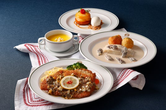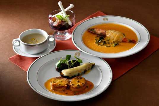 スープ、メイン料理、デザートのコース仕立てでお召し上がりいただく本フェアでは、選べるメイン料理を2種ご用意しました。第一弾(9/1~10/15)では、丁寧に揚げ焼きした仔牛肉にアンチョビやオリーブ、ケッパー、バターなどを使用した爽やかな味わいのソースを合わせたボリュームある一品を、魚料理は蒸し煮にした平目や茸、トマトのライスコロッケを、香り高いモリーユ茸のなめらかなクリームソースでご用意しました。第二弾(10/16~11/30)では、有頭海老に舌平目を巻き付け蒸し煮にし、甲殻類の旨味がたっぷり詰まったアメリカンソースと白ワインのソースを合わせ焼き上げた伝統の一品のほか、丸めたビーフにベーコンを巻き、グリーンペッパー香るクリーミーでコク深いソースが肉の美味しさを引き立てるジューシーな一皿をお選びいただけます。めぐる季節を感じながら味わうクラシックホテル伝統メニューの数々を、この機会にぜひお楽しみください。