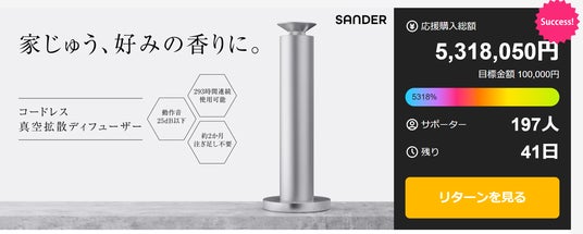 株式会社Yanoglobal(所在地:東京都)は、水や熱を使わず香りを空間に届ける新発想のコードレス真空拡散ディフューザー「The Shine Mist」を、日本初上陸商品として、2025年8月17日(日)より「Makuake」にて先行販売開始いたしました。公開からわずか2日で支援総額500万円を突破し、大きな注目を集めています。
