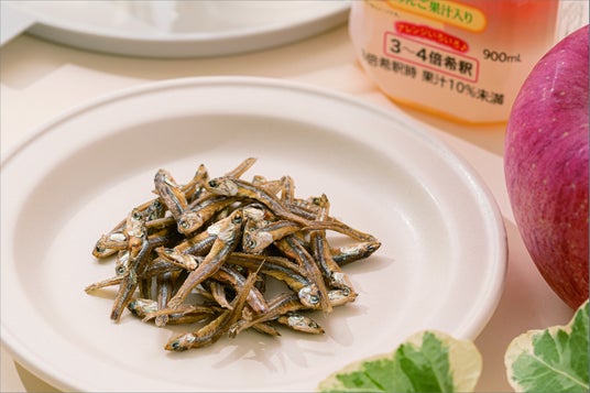 - 国産いりこを井藤漢方製薬の「ビネップルスマイルりんご酢飲料」で酢漬けにしたお菓子