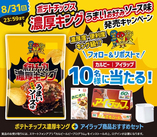 新商品発売を記念して、アイラップとコラボレーションした「ポテトチップス濃厚キングうまいお好みソース味発売キャンペーン」を実施します。