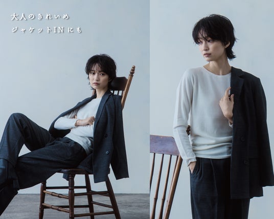 また、以前からいただいているお声を反映させ、インナーとしてだけでなく、よりアウターとしても着用しやすい衿デザインへと改良しました。厚みがあるしっかりとした組織を衿に採用することで、一枚でも様々なスタイルに対応でき、普段使いから特別なシーンまで幅広い場面で着用いただけるようになりました。