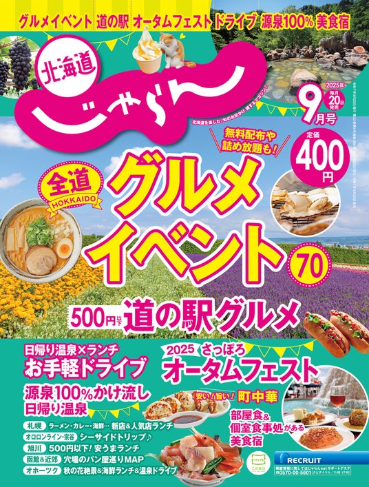 日帰り温泉&ランチお手軽ドライブ、秋のグルメイベント70連発!、2025さっぽろオータムフェスト見どころ完全ガイド!、道の駅絶品500円以下グルメ大集合!、【 全道】源泉100%かけ流し!日帰り温泉100<完全保存版>、安い!旨い!間違いない!町中華、部屋食・個室食事処も魅力のおいしい宿…など今月も旬の情報が満載です。ぜひご覧ください。