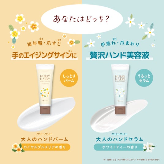 そんなHURRY HARRYの中でも発売より9年間愛され続けるロングセラー商品「ハリーハリー 大人のハンドバーム」がリニューアル!手肌だけでなく、"爪まで同時にケアする"コンセプトはそのままに、新しい美容液タイプの「ハリーハリー 大人のハンドセラム」も加えて2025年8月27日に新発売します。