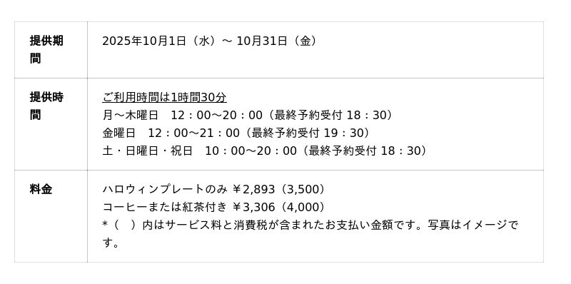 参考:「オータムアフタヌーンティー」&「ハロウィンプレート」