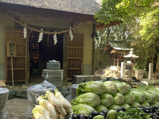 人々が供物の一部を甕(かめ)に入れたところ偶然にも程よい塩漬けになり、この奇跡的な保存食は、神からの恵みとして珍重され、万病を治すお守りとなりました。これが日本における漬物の起源だとされています。