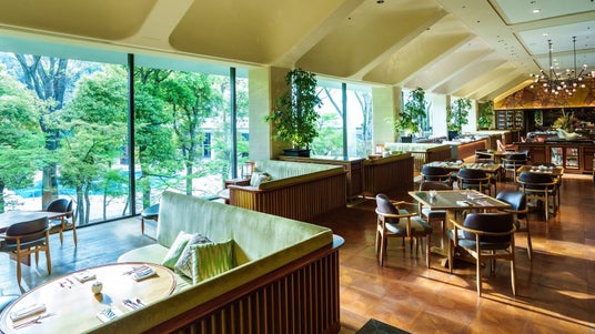 大きな窓にもみじを望む開放的な空間で、秋の味覚に心満たされる優雅な午後のひとときをお過ごしください。