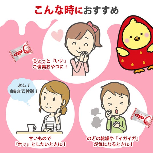 やさしいイチゴミルク味と、子どもが思わずおねだりしたくなるキャラクター「あまぴよちゃん」で、親子の甘い時間をお届けします。