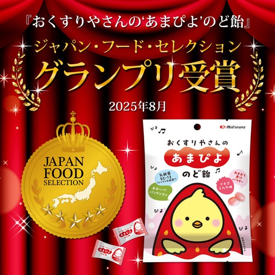 創業1913年の漢方薬メーカー、松浦薬業株式会社(本社:名古屋市)が開発した『おくすりやさんの`あまぴよ'のど飴』が、2025年8月15日「ジャパン・フード・セレクション(主催:日本フードアナリスト協会)」にて最高位の【グランプリ】を受賞しました。