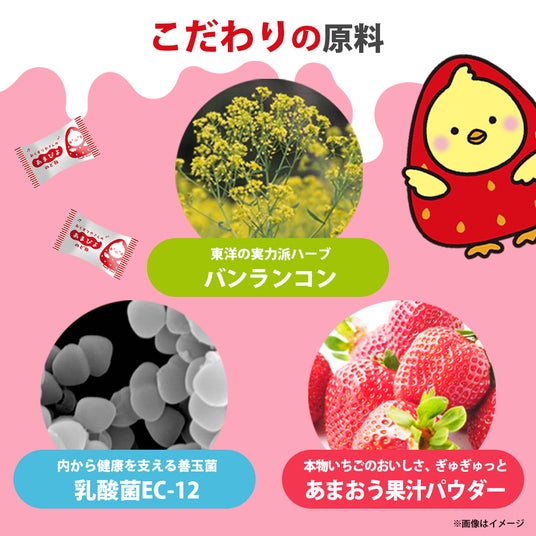 ●バンランコン・EC-12乳酸菌・あまおう果汁パウダー配合●甘くてやさしいイチゴミルク味