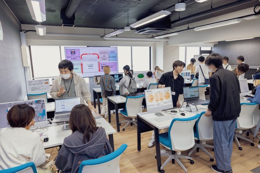 IT分野では、2年生が中心となって取り組んだ企業プロジェクトの成果のアプリケーションを展示。来場者は実際にアプリを操作し、完成度の高さに驚きの声を上げていました。