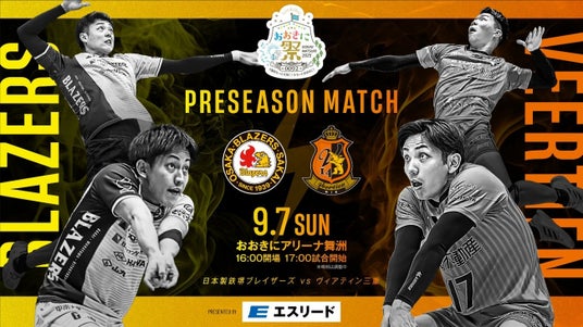 【おおきに祭 9/7(日) 】チケット販売開始!日本製鉄堺ブレイザーズvsヴィアティン三重 プレシーズンマッチPresented by エスリード