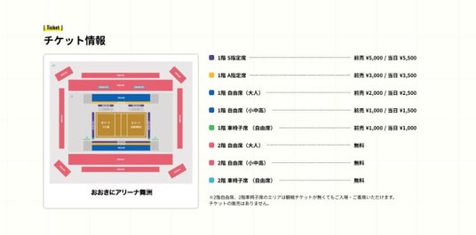 ※2階自由席、2階車椅子席のエリアは観戦チケットが無くてもご入場・ご着席いただけます。