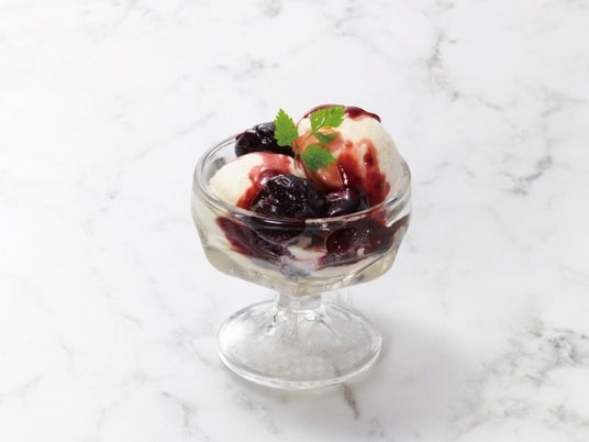 バニラアイスクリームと濃厚な温かいチェリーソースをご一緒に。シナモンなどのスパイスが香るチェリーソースと冷たいバニラアイスクリームの組み合わせをお楽しみください。