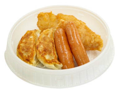 餃子2個、鶏の唐揚2個、シャウエッセン(R)2本、ライス(中)、カルピスウォーター(R)1本(アサヒ飲料株式会社様ご協賛)