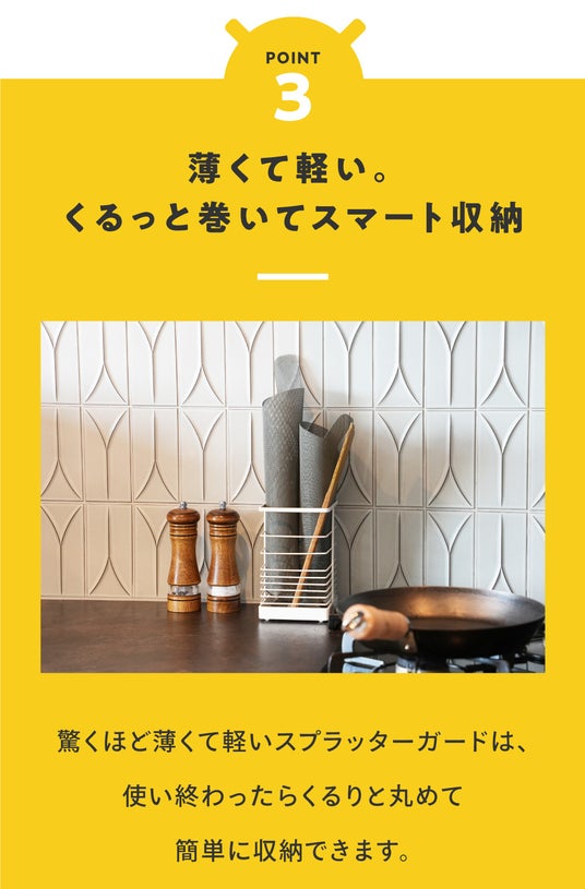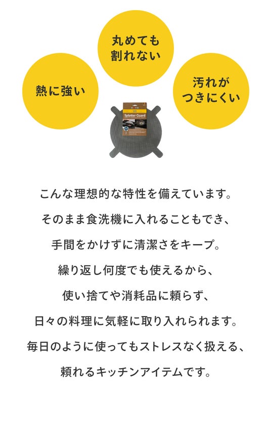 世界が選ぶ、油はねガードの新定番「スプラッターガード」。洗える、丸められる、ずっと使える